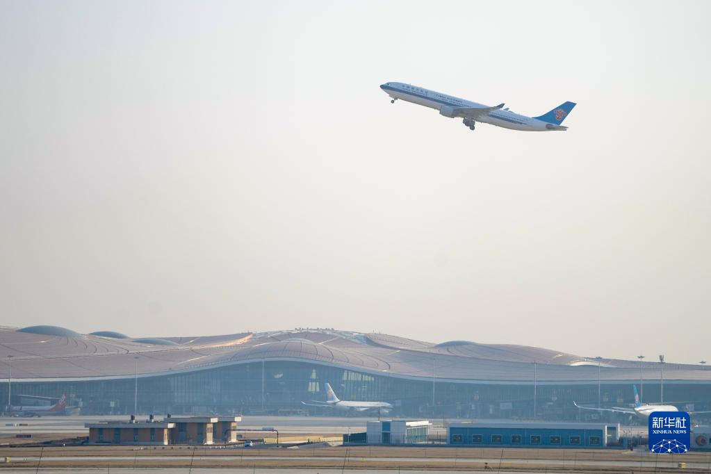 1月17日,從北京大興飛往香港的南航CZ309次出境航班起飛。新華社記者 鞠煥宗 攝