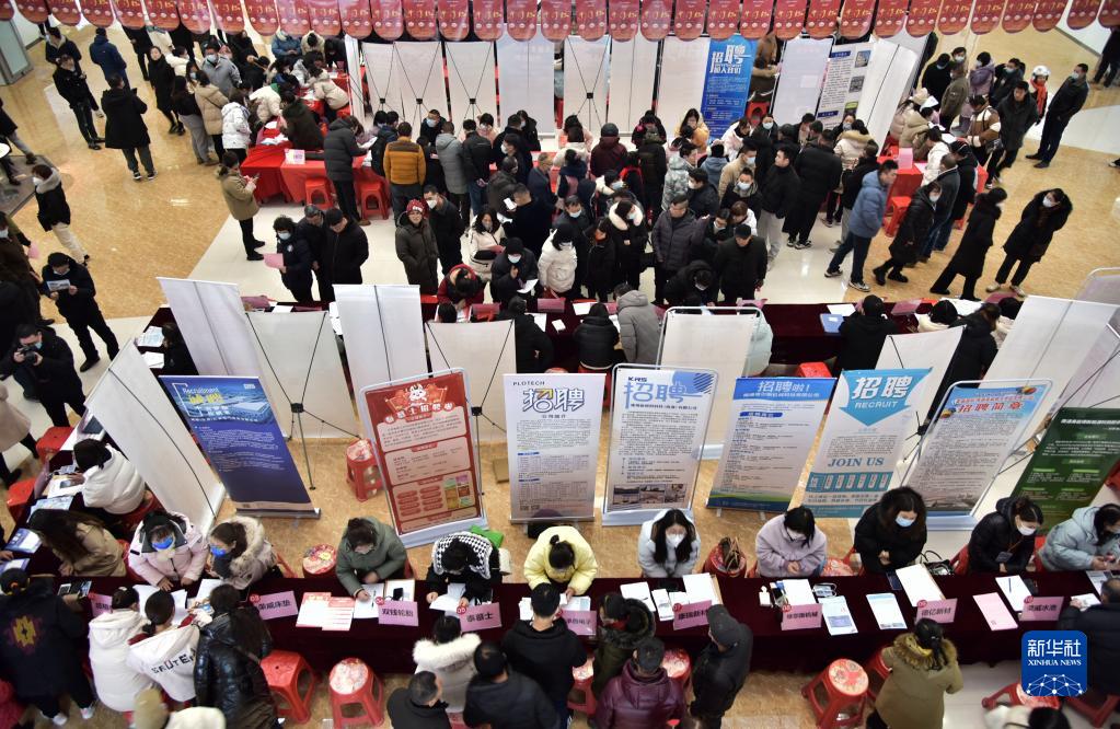 1月29日,求職者在山東省青州市人才資源市場“春風行動暨就業(yè)援助月專場招聘”中了解用工信息。新華社發(fā)(王繼林 攝)