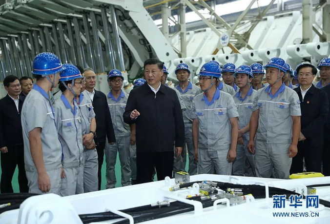 2019年9月16日至18日,習近平在河南考察。這是17日下午,習近平在鄭州煤礦機械集團股份有限公司總裝車間同工人們親切交流。新華社記者 鞠鵬 攝