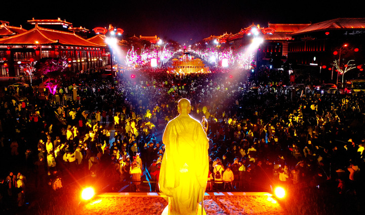 西安大唐不夜城步行街區(qū)的玄奘廣場。新華社記者 劉瀟 攝