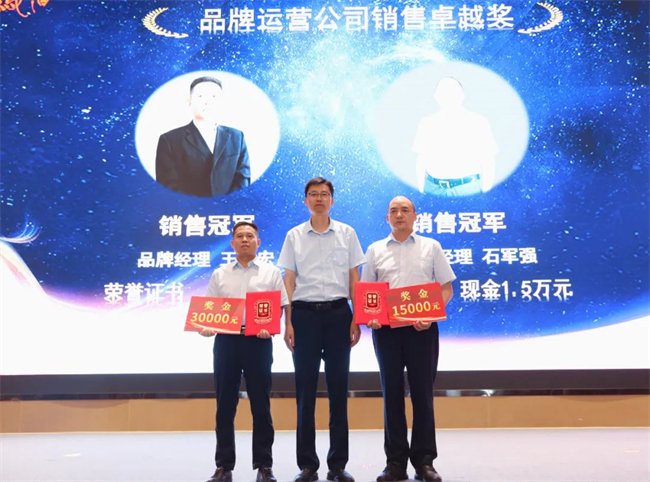 張周虎為品牌運營公司銷售卓越獎獲得者頒發(fā)榮譽證書與獎金