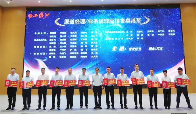 西鳳股份公司財務管理部部長陳宏利為業(yè)務經(jīng)理銷售卓越獎獲得者頒發(fā)榮譽證書與獎金
