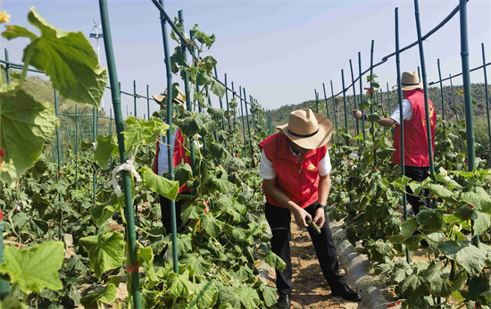 在北翼采煤沉陷區(qū)立體式生態(tài)重建示范基地,放眼望去,黃瓜、豆角、西葫蘆、油菜、西瓜、甜瓜等二十幾種應(yīng)季果蔬長(zhǎng)勢(shì)喜人,沉甸甸的果實(shí)掛滿藤蔓。一塊塊規(guī)規(guī)整整、成框連片的梯田層次分明。工作人員奔忙在田埂水渠,構(gòu)筑成了一幅極具煙火氣息的絕美畫面。站在瞭望臺(tái)俯瞰,滿眼一片生機(jī)盎然,仿佛為陜北地區(qū)黃土溝壑建立起了一道綠色屏障。遙望這一切,誰(shuí)能想到如今的良田美景,曾經(jīng)卻是個(gè)雜草叢生的荒山。