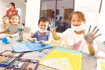 江口村的孩子在藝術(shù)區(qū)工藝美術(shù)培訓(xùn)班上畫(huà)畫(huà)。鐘 磊攝