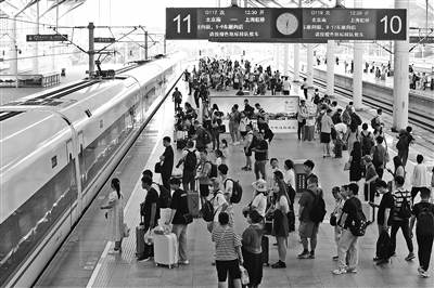 圖為當(dāng)日旅客在徐州東站站臺(tái)候車。新華社記者 毛俊 攝