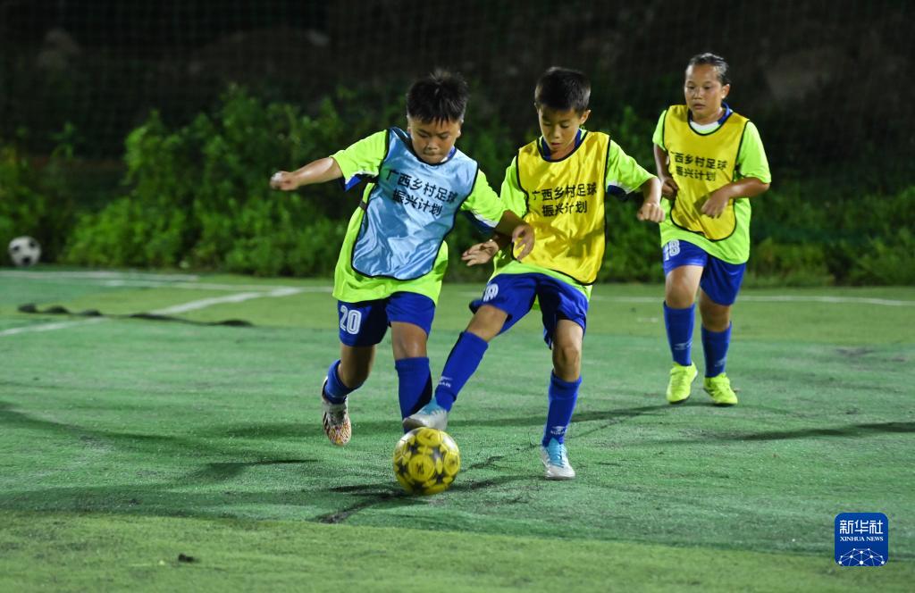 平地屯是位于廣西柳州市柳江區(qū)穿山鎮(zhèn)的一個小山村。8月7日晚,為期近1個月的平地屯暑期公益足球夏令營結(jié)束,一場匯報訓(xùn)練成果的足球?qū)官愒诖謇锏木G茵場上打響,吸引眾多村民觀賽。2020年,平地屯的村民組成義務(wù)勞動隊,為孩子們修建專用足球場,社會愛心人士為他們捐贈了人工草坪、球門、球場照明燈等設(shè)施,公益足球教練定期免費(fèi)為孩子們培訓(xùn),眾人聯(lián)合起來,給村里喜歡足球的孩子們點燃了綠茵夢想。