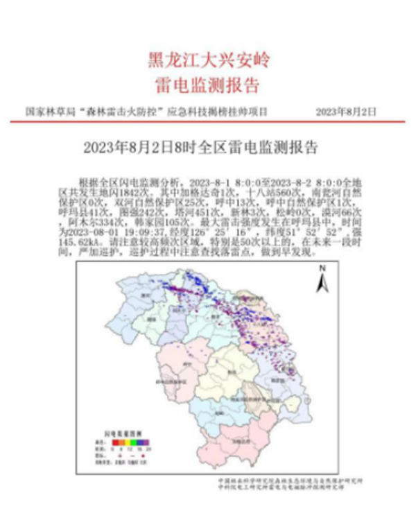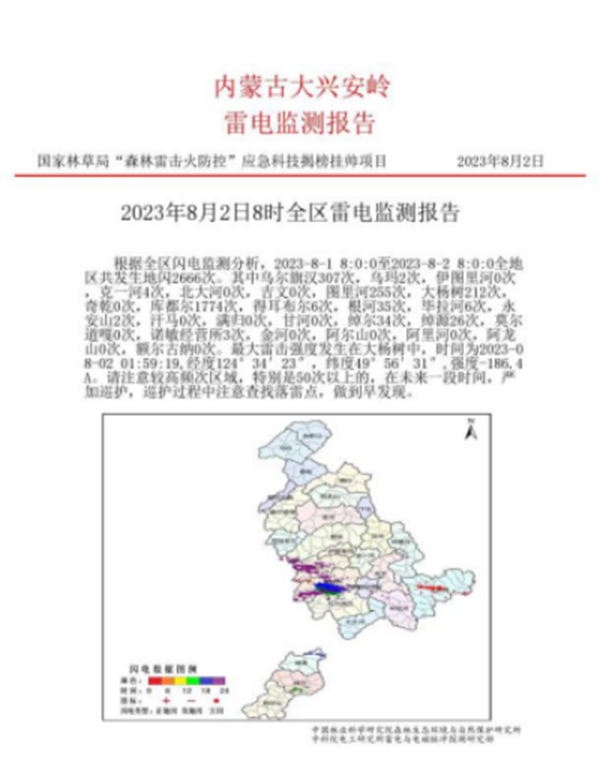 黑龍江大興安嶺雷電活動(dòng)(8月2日?qǐng)?bào)告)