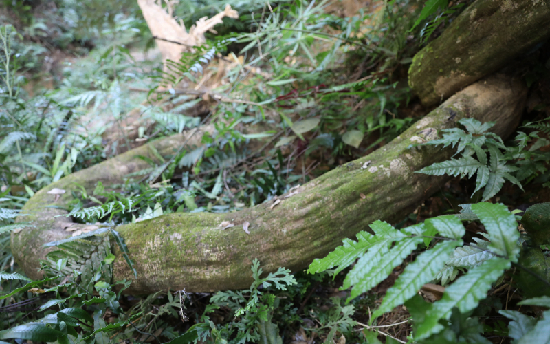 一片深山老林中,若沒有眼前這些無序的秋千般的古藤相伴,那絕不是健康完整的生態(tài)林,甚至有可能是人工經(jīng)濟(jì)林。它們,其中一部分被選擇性的保護(hù)下來,還有大量的頑強(qiáng)的競(jìng)爭者被選擇性淘汰,這樣的經(jīng)濟(jì)林,它天生有基因缺陷。而一個(gè)不受破壞的原始生態(tài)林中,往往能代表這片綠色的名片恰恰不是那些高顏值的高大林木,反而是長相平常的桫欏,甚至是這些相貌古怪的藤蘿,它們身上有著更遠(yuǎn)古的基因,讓我們看見亙古以前的樣子。