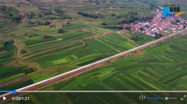 新華網太原8月22日電 “蔡家崖號”列車穿過重重呂梁山進入嵐河盆地,眼前豁然開朗:連片的萬畝土豆花海競相綻放,與遠處的青山、村莊相呼應,構成一幅自然寫意畫。