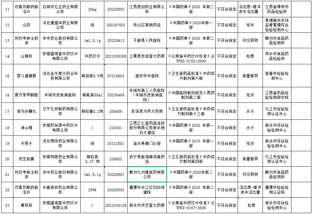 為加強藥品質(zhì)量監(jiān)管,保障公眾用藥安全,根據(jù)《中華人民共和國藥品管理法》及相關(guān)法律法規(guī)和江西省藥品抽檢計劃,我省各級藥品監(jiān)管部門和檢驗機構(gòu)對全省藥品生產(chǎn)、經(jīng)營和使用單位實施了監(jiān)督抽檢?,F(xiàn)將本期藥品抽檢信息通報如下: