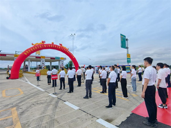 10月8日,由中鐵一局一公司承建的肇慶東進大道三期工程蓮花南互通立交及收費站正式開通運營。肇慶市副市長謝桂坤,中鐵一局副總經理郭秀春,中鐵一局一公司總經理韓勝等相關領導以及肇慶市政府有關部門、市交通集團、設計、監(jiān)理和項目參建人員現場共同見證蓮花南互通立交及收費站開通。