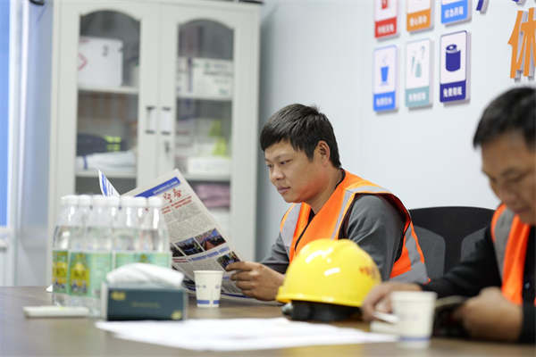服務(wù)站門口即是S312省道,距離轉(zhuǎn)體梁主要施工工點(diǎn)不足500米,步行8到10分鐘可達(dá)。服務(wù)對(duì)象包括勞動(dòng)工人、環(huán)衛(wèi)綠化工人、市政維修工人等戶外勞動(dòng)者。站點(diǎn)內(nèi)溫暖明亮,空調(diào)和飲水機(jī)的冷熱水24小時(shí)提供便利,雨傘架、充電站解決燃眉之急。急救藥箱內(nèi)含有退燒貼和暖貼,感冒消炎、消毒止血常備藥以供不時(shí)之需,除此之外還增設(shè)特色閱讀區(qū),各類書籍、月刊、報(bào)紙可供勞動(dòng)者休息時(shí)閱讀放松,并由工作人員定期更新。
