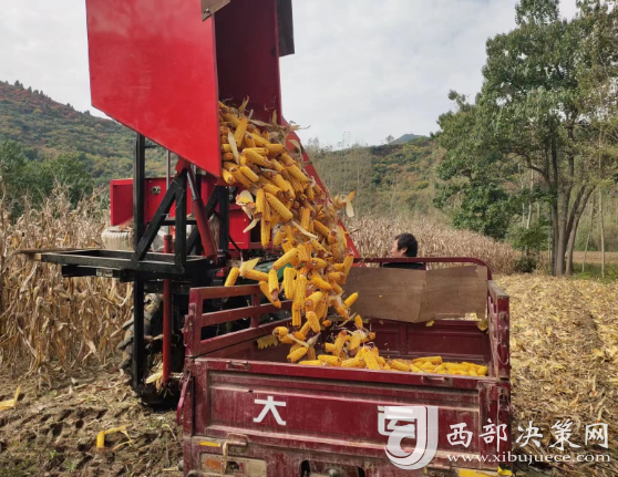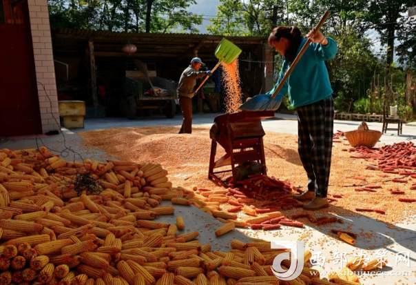 西部決策網(wǎng)訊(記者帥華鋒 通訊員 余小芹 余雅各 李三良)田疇沃野好“豐”光,遍地金黃糧滿倉。金秋時節(jié),甘肅隴南兩當縣西坡鎮(zhèn)田間地頭的玉米喜獲豐收,村民們正利用晴好天氣采收玉米,忙得不亦樂乎,家家戶戶房前屋后堆滿了金黃的玉米,洋溢著豐收喜悅的笑臉與收獲的金黃色玉米交相輝映,勾勒出一幅動人的金秋豐收圖。