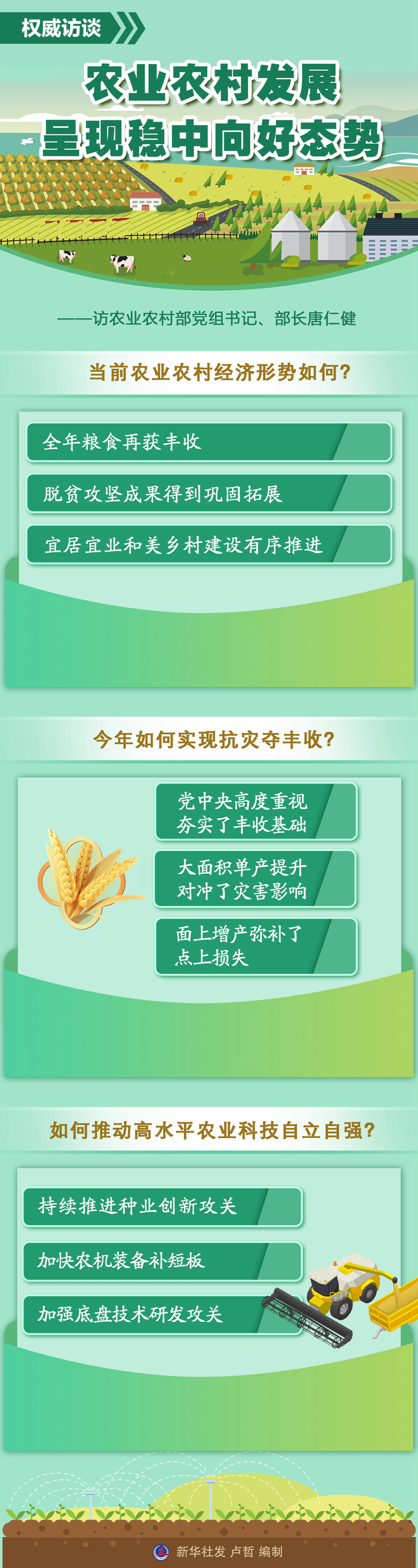 新華社北京11月8日電 題:農(nóng)業(yè)農(nóng)村發(fā)展呈現(xiàn)穩(wěn)中向好態(tài)勢——訪農(nóng)業(yè)農(nóng)村部黨組書記、部長唐仁健