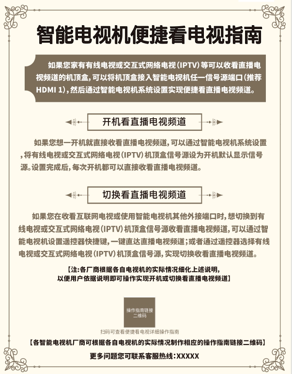 記者11月10日從國(guó)家廣播電視總局獲悉,根據(jù)治理電視“套娃”收費(fèi)和操作復(fù)雜工作部署要求,國(guó)家廣播電視總局、工業(yè)和信息化部、國(guó)家市場(chǎng)監(jiān)督管理總局、中國(guó)消費(fèi)者協(xié)會(huì)決定開(kāi)展電視收看“明白卡”提示工作。自2023年11月起,各電視機(jī)生產(chǎn)廠商要將制作完成的《電視收看“明白卡”》裝入電視機(jī)包裝箱內(nèi)的說(shuō)明材料中,同時(shí)在電商銷(xiāo)售頁(yè)面、線下實(shí)體銷(xiāo)售和廠商入戶(hù)安裝電視機(jī)過(guò)程中,將“明白卡”內(nèi)容向用戶(hù)明確展示,并告知用戶(hù)只有開(kāi)通有線電視或IPTV方可收看電視直播頻道節(jié)目。(記者王鵬)