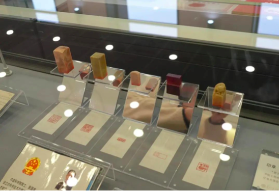展柜里還有一排整齊擺放的方印格外醒目。其中,三枚是沈自尹院士工作時(shí)常用的處方藥和膏方專用印。