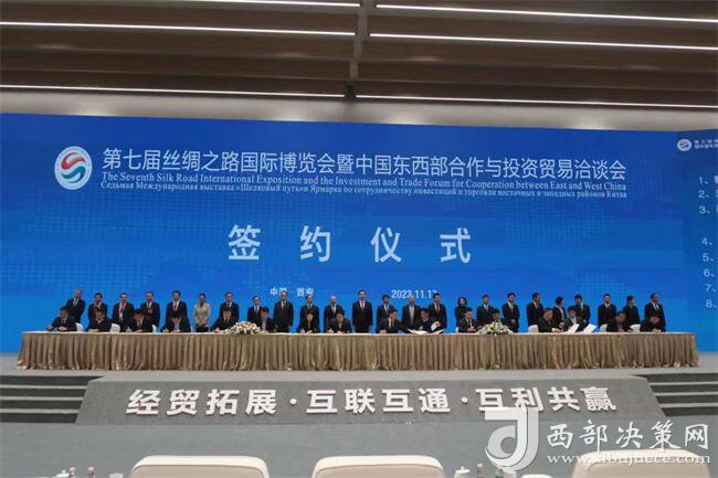 西部決策網(wǎng)訊 11月17日上午,第七屆絲綢之路國際博覽會暨中國東西部合作與投資貿(mào)易洽談會集中簽約儀式在西安國際會展中心會議樓舉行,現(xiàn)場共簽約合同項(xiàng)目82個,總投資1005億元,其中商洛簽約7個項(xiàng)目,總投資額83.3億元。