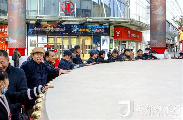 置身于目前西安老城區(qū)面積最大的文化步行街,采風(fēng)團(tuán)成員們情緒亢奮,大家在十字交匯華彩斑斕的獅吼廣場,爭相撫按中心大鼓感受濃濃的福氣。三座復(fù)建的高大坊門及楹聯(lián)喚起諸多老西安的歷史記憶,在“民樂園百年圖鑒”展板前看到民樂園的坎坷歷史和藝術(shù)群星在這里的閃光軌跡,紛紛感慨時代的飛速發(fā)展。