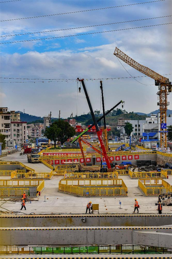 據(jù)項(xiàng)目部常務(wù)副經(jīng)理吳躍華介紹,白坭坑站目前投入電動(dòng)抓斗3臺、長臂挖掘機(jī)1臺,短臂挖機(jī)6臺、25噸汽車起重機(jī)3臺,100噸汽車起重機(jī)1臺、塔吊2臺、土方運(yùn)輸車40臺,各工種作業(yè)人員400人。日平均出土量約2000立方米、綁扎制作鋼筋45噸。