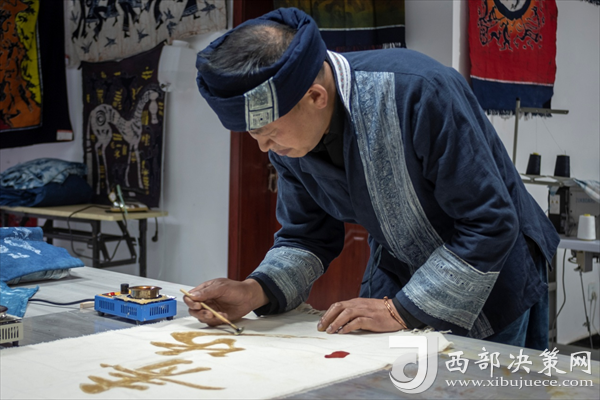 蠟染非遺傳承人楊兵正在創(chuàng)作作品