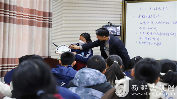 市級(jí)學(xué)科帶頭人、市級(jí)教學(xué)能手余彥強(qiáng)執(zhí)教了《光的反射》,課堂設(shè)置問題情境導(dǎo)入,注重了學(xué)生物理學(xué)科核心素養(yǎng)的培養(yǎng)。通過觀察、合作探究得出光的反射定律內(nèi)容,在實(shí)驗(yàn)中強(qiáng)化邏輯思維能力的訓(xùn)練,緊扣物理課程引導(dǎo)學(xué)生做追光少年,師生互動(dòng),生生互動(dòng),學(xué)生在和諧愉悅的氛圍中收獲了新知。