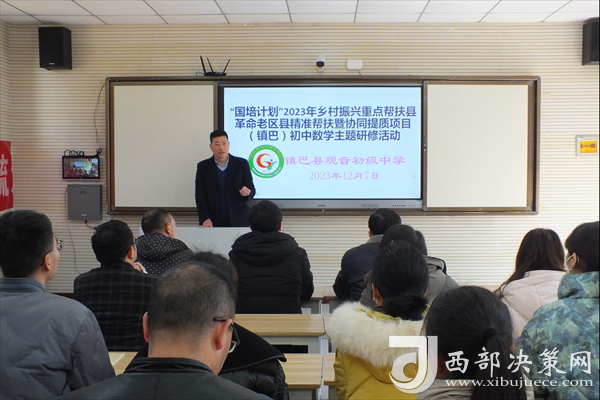 西部決策網(wǎng)訊 為落實(shí)陜西省學(xué)前師范學(xué)院《鄉(xiāng)村振興重點(diǎn)幫扶縣革命老區(qū)縣精準(zhǔn)幫扶暨協(xié)同提質(zhì)(鎮(zhèn)巴縣)培訓(xùn)指導(dǎo)方案》和鎮(zhèn)巴縣教育發(fā)展服務(wù)中心關(guān)于第二階段研修工作的安排,進(jìn)一步加強(qiáng)全縣數(shù)學(xué)學(xué)科的交流研討,提高數(shù)學(xué)教學(xué)水平,12月7日,“國培計劃”2023年鄉(xiāng)村振興重點(diǎn)幫扶縣革命老區(qū)縣精準(zhǔn)幫扶暨協(xié)同提質(zhì)項(xiàng)目(鎮(zhèn)巴)初中數(shù)學(xué)第二階段第一輪主題研修活動,在鎮(zhèn)巴縣觀音初級中學(xué)教育集團(tuán)總校成功舉辦。