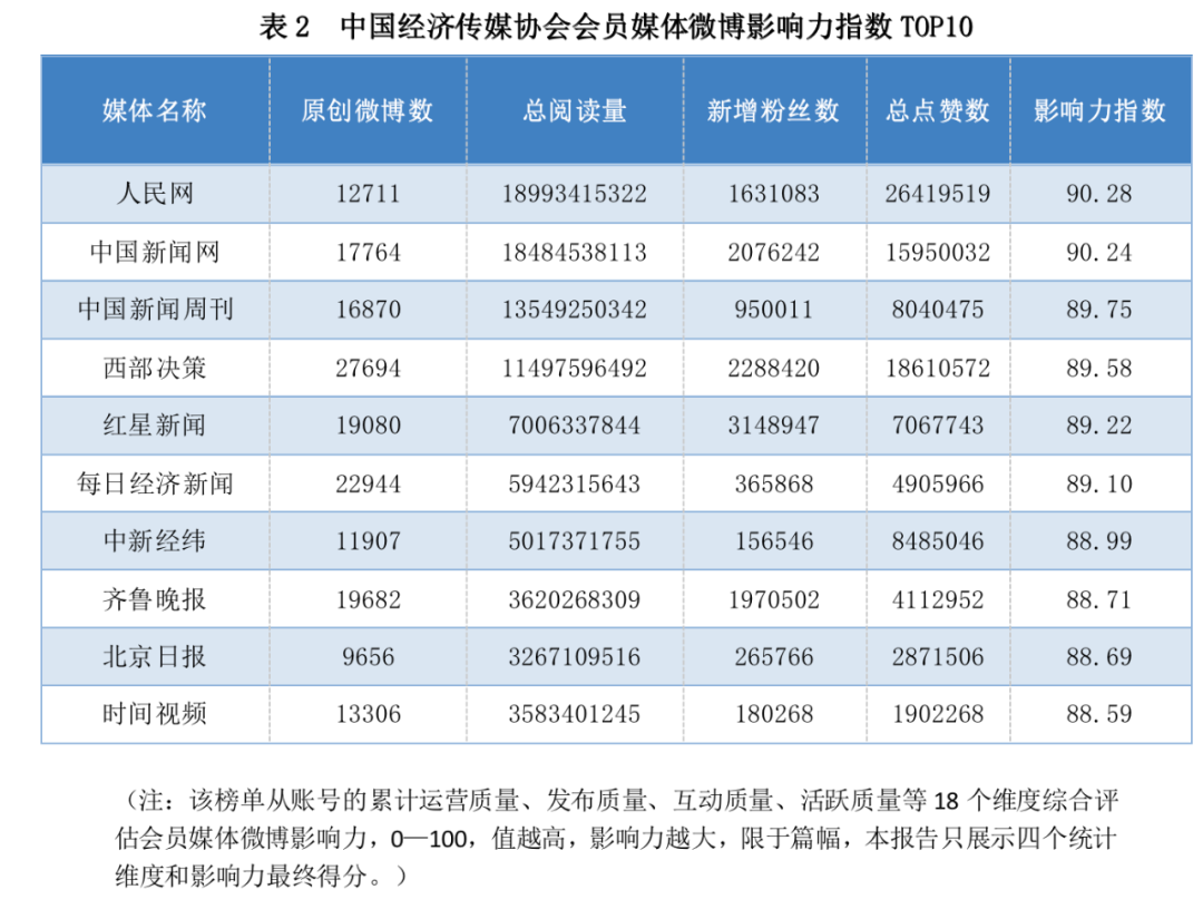大會(huì)發(fā)布了《2023年中國(guó)經(jīng)濟(jì)媒體融合發(fā)展實(shí)踐報(bào)告》,并公布了“2023 中國(guó)經(jīng)濟(jì)媒體微博影響力指數(shù) TOP10”“2023 中國(guó)經(jīng)濟(jì)媒體微信公眾號(hào)影響力指數(shù)TOP10”兩大榜單。