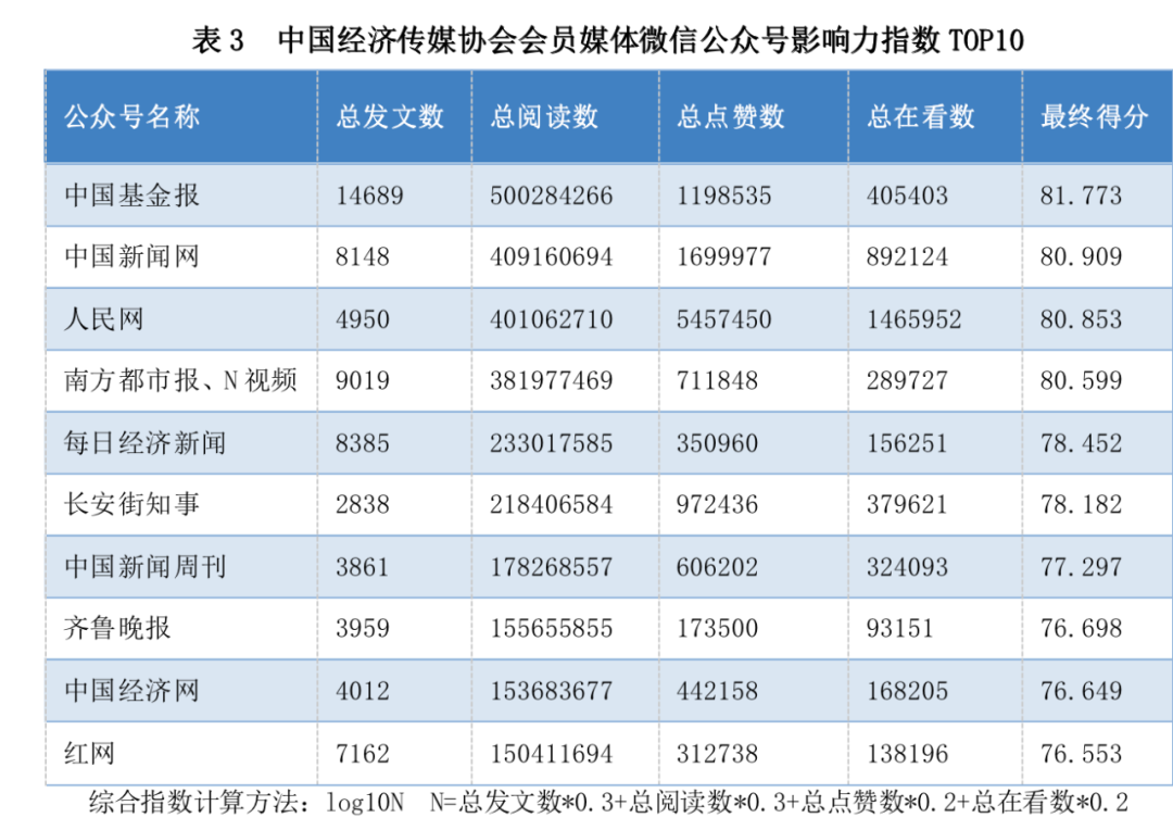 中國(guó)基金報(bào)、中國(guó)新聞網(wǎng)、人民網(wǎng)、南方都市報(bào)、每日經(jīng)濟(jì)新聞、長(zhǎng)安街知事、中國(guó)新聞周刊、齊魯晚報(bào)、中國(guó)經(jīng)濟(jì)網(wǎng)、紅網(wǎng)10家媒體入選“中國(guó)經(jīng)濟(jì)傳媒協(xié)會(huì)會(huì)員媒體微信公眾號(hào)影響力指數(shù)TOP10”榜單。