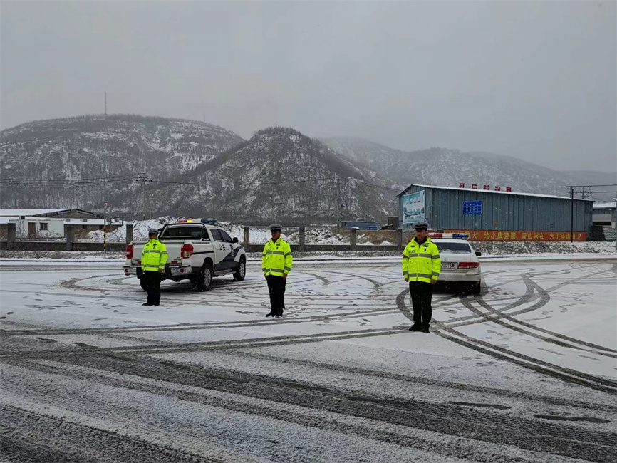 降雪天氣后,延長公安交警強化源頭管控,采取警車巡邏、喊話提示、警燈警示等方式,加大巡邏頻率和巡邏密度,多舉措提高路面見警率、管事率,防止“小事故”造成“大擁堵”。同時,通過短信、微信公眾號等廣泛發(fā)布轄區(qū)降雪情況和雪天駕車出行提示信息,切實消除道路交通安全隱患,全力以赴保障冰雪惡劣天氣下轄區(qū)道路安全暢通。