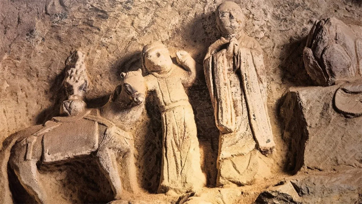 婦孺皆知的《西游記》是明代作家吳承恩根據(jù)唐朝僧人玄奘取經(jīng)的歷史創(chuàng)作的小說,小說里的唐僧即是玄奘。在鐘山石窟一號窟西壁有一幅石刻雕像正描繪了玄奘西行取經(jīng)的形象,要比《西游記》的創(chuàng)作還早500多年,成為目前已知年代最早的“玄奘取經(jīng)圖”。