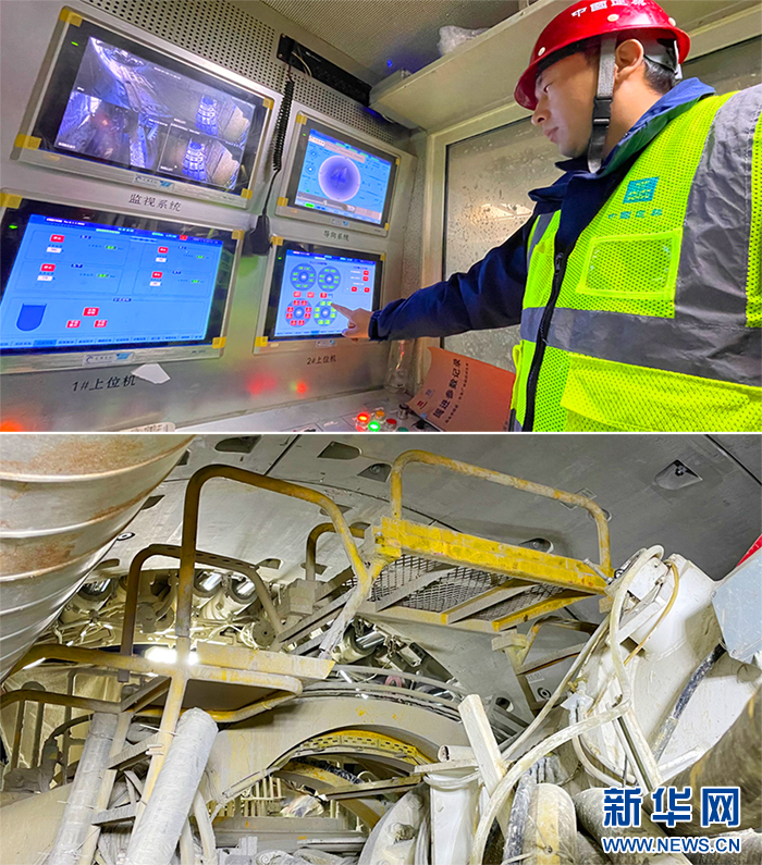 1月3日,在西安地鐵15號線一期工程長安廣場站建設(shè)工地上,盾構(gòu)機(jī)司機(jī)吳桃操作盾構(gòu)機(jī)作業(yè)。今年39歲的吳桃是江蘇淮安人,他說自己當(dāng)盾構(gòu)機(jī)司機(jī)已經(jīng)20年了,很喜歡這份工作。“希望過年能回家和家人團(tuán)聚,如果趕工期就堅(jiān)守崗位。”吳桃說。新華網(wǎng) 楊喜龍 攝(拼版照片)