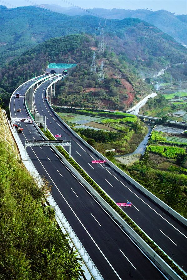 至此,起點(diǎn)于隆林縣平班鎮(zhèn)委樂(lè)村,由東向西途經(jīng)南希屯、南卡界屯、南隴屯,終點(diǎn)于隆林縣城東南側(cè)那他屯,雙向4車道、寬26米、行車速度每小時(shí)100公里,又是廣西高速公路規(guī)劃網(wǎng)重要組成部分的一條發(fā)展之路、振興之路就建成通車了。汕昆高速公路與隆林縣城也不再擦肩而過(guò),區(qū)域性交通樞紐的神經(jīng)末梢打通了。