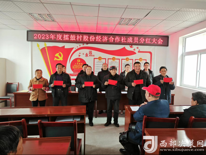 西部決策網(wǎng)訊(記者帥華鋒 通訊員 張曉丹)新春將至,擂鼓村的村民迎來一件喜事。1月18日,甘肅省兩當(dāng)縣西坡鎮(zhèn)擂鼓村股份經(jīng)濟(jì)合作社召開2023年度分紅大會(huì),分紅現(xiàn)場氣氛熱烈,喜氣洋洋。