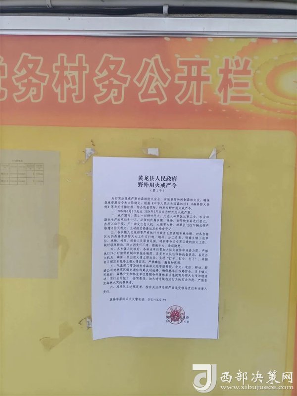 西部決策網(wǎng)訊(記者馬瑞 通訊員 賀金霞) “為有效預(yù)防和撲救森林火災(zāi),保障人民生命財產(chǎn)安全,保護森林資源,維護生態(tài)安全,根據(jù)《中華人民共和國森林法》,制定本條例。......”在黃龍縣崾崄鄉(xiāng)的各村委會,你都可以看到各防火宣傳點以及隊部的宣傳喇叭在開展森林防火宣傳。同時,防火巡查員們積極上路,遇到車輛及時進行宣傳叮囑。這是崾崄鄉(xiāng)近期開展防火工作的一個縮影。在近期溫度升高,林下積雪消融完全,防火等級居高不下的關(guān)鍵時刻,崾崄鄉(xiāng)堅持狠抓防火,在全鄉(xiāng)構(gòu)筑起森林防火的堅實屏障。