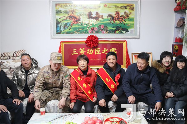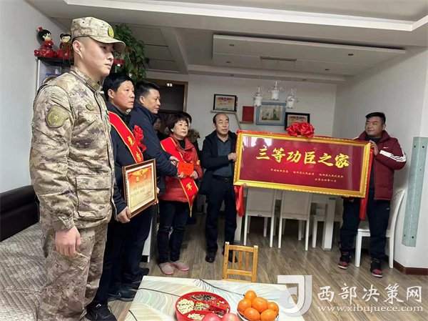 西部決策網(wǎng)訊 鞭炮禮花鋪天蓋地,大街小巷喜氣洋洋。由略陽縣人武部、退役軍人事務(wù)局以及鎮(zhèn)村領(lǐng)導(dǎo)組成的隊(duì)伍,正在為榮獲三等功的伍興虎、王瑤家庭送來立功受獎(jiǎng)的喜報(bào)和三等功臣牌匾。軍地領(lǐng)導(dǎo)帶著問候與祝福,為家屬們帶紅花、披綬帶,并送上慰問金。