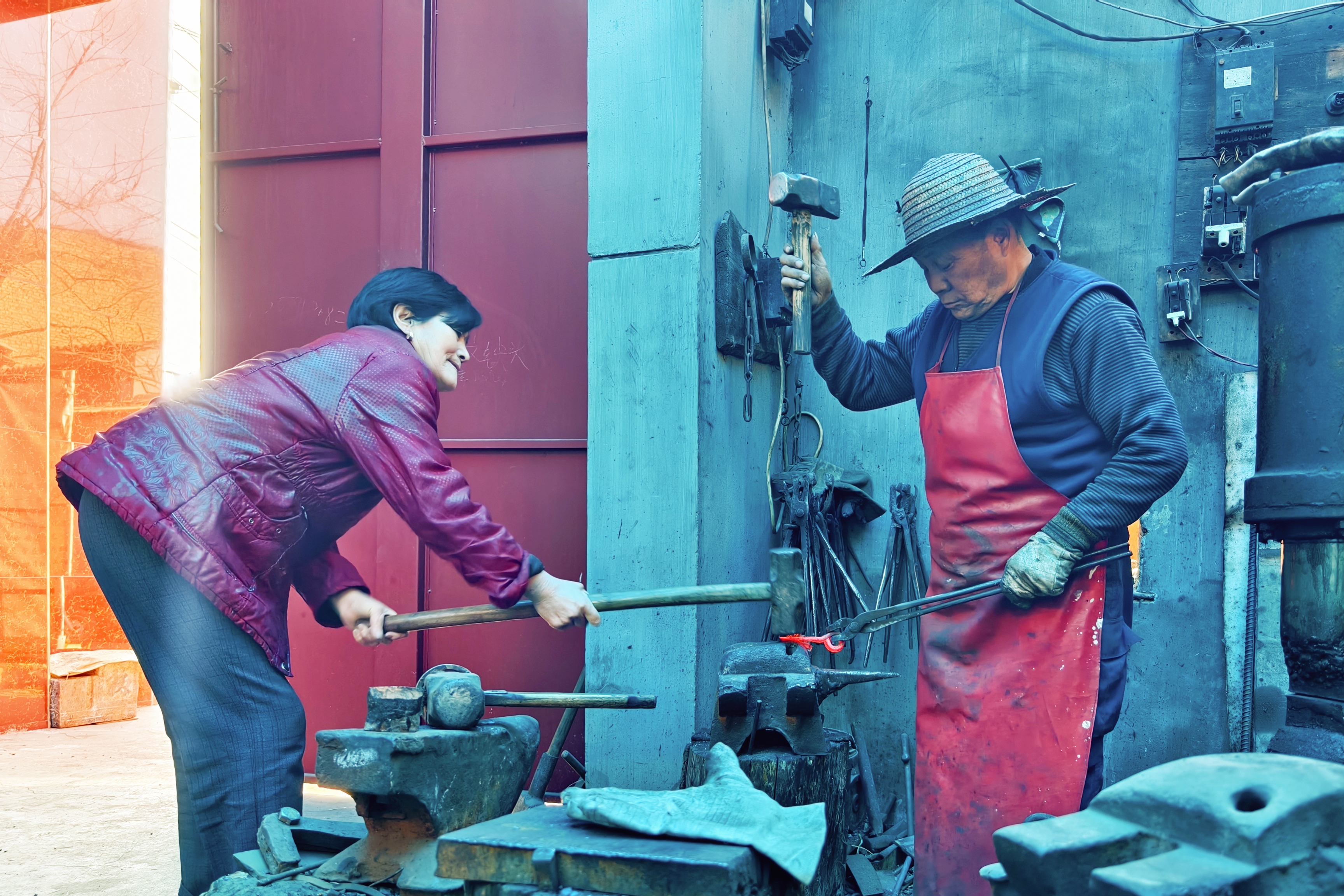 2024年1月4日上午,記者來到東車村,找到了屈希望的家,只見屈師傅和老伴正在自家的打鐵鋪鍛造農(nóng)具。70歲的屈希望從事打鐵工作已有50多年,是陜西省非物質(zhì)文化遺產(chǎn)傳統(tǒng)打鐵技藝代表性傳承人,其代表作有鎬、犁、鏵,鍋、鏟、鐵勺等生產(chǎn)用具和刀劍等冷兵器時代的兵器。