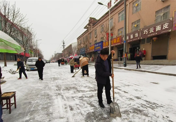 以雪為令,疏通道路。領(lǐng)導(dǎo)班子成員在崗指揮、對鎮(zhèn)區(qū)內(nèi)路段包片開展掃雪鏟冰,同時督促商戶履行“門前三包”區(qū)域積雪清掃職責(zé)。鎮(zhèn)村黨員干部紛紛行動,主動參與到掃雪鏟冰活動中,清理主要道路積雪,方便群眾出行。