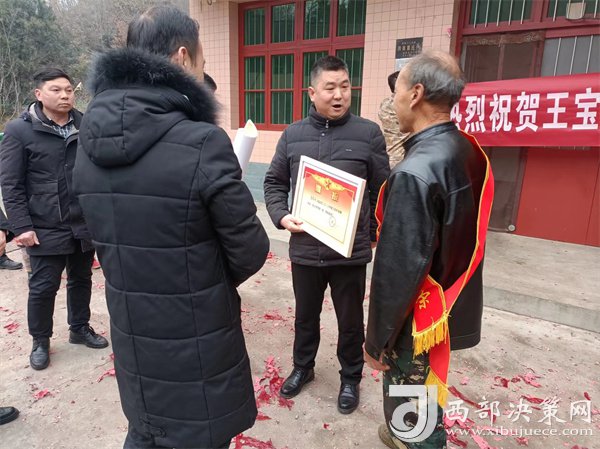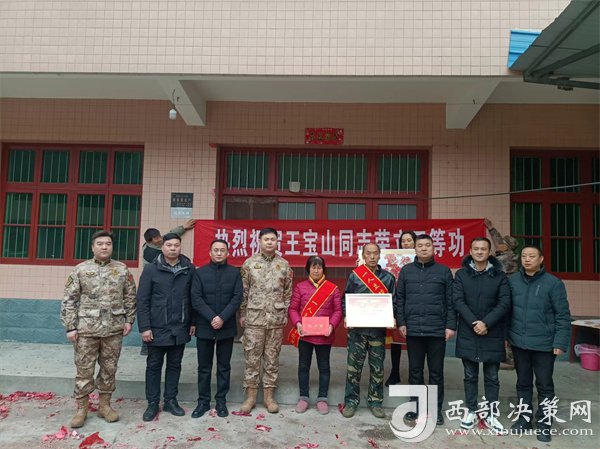 西部決策網訊 春節(jié)前夕,勉縣退役軍人事務局、勉縣定軍山鎮(zhèn)武裝部一行到轄區(qū)榮立三等功的現(xiàn)役軍人王寶山家中,向其家屬送上王寶山的立功喜報和慰問金,對王寶山在部隊里取得的優(yōu)異成績表示祝賀。