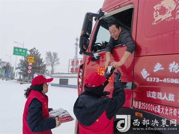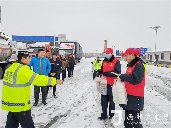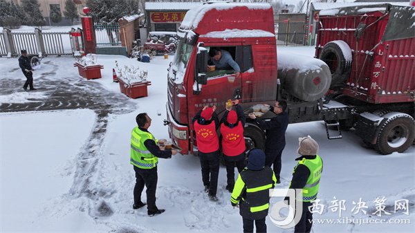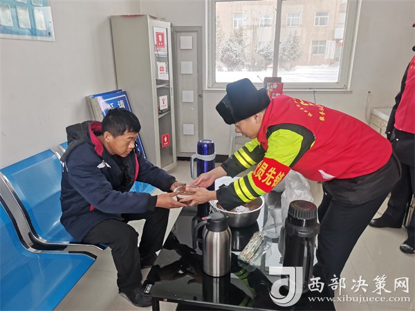 這有小米粥、炸油餅,雞蛋還熱乎著……”榆靖分公司志愿者暖心地喊著話。“行動(dòng)是最好的破冰劑”,志愿者們?yōu)楦咚贉袈每退腿ナ澄?,頂風(fēng)冒雪分發(fā)給滯留在收費(fèi)站的司乘人員。一件件穿梭在寒風(fēng)中的“紅馬甲”此刻成為了冬日里最美的“志愿紅”,讓群眾在寒意逼人的天氣里感受到了一份特別的溫暖。大家紛紛表示感謝,“熱粥、小菜、松軟的饅頭下肚,全身都熱乎了。”一名滯留司機(jī)真誠(chéng)地感激道。