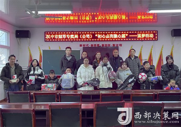 西部決策網(wǎng)訊 2月22日,漢中市煙草專賣局(公司)到定點(diǎn)幫扶村阜川鎮(zhèn)蒲家壩村,開展“初心點(diǎn)亮微心愿”——圓夢活動(dòng)。來自蒲家壩村的11名青少年兒童在新學(xué)期開學(xué)前收到了他們期盼已久的禮物。