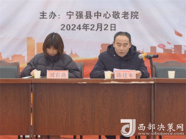 西部決策網(wǎng)訊 2月26日下午,寧強縣中心敬老院召開2023年度工作總結(jié)表彰大會暨2024年度第一次院民大會。會議由縣中心敬老院副院長劉興偉主持,全體工作人員及院民參加,并邀請縣民政局黨組成員、副局長陳建本參加列席指導。