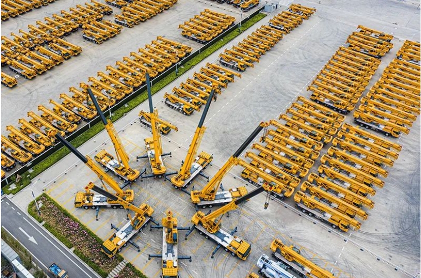 江蘇徐工集團(tuán)重型機(jī)械有限公司的產(chǎn)品調(diào)試場(chǎng)。(圖源:新華社)