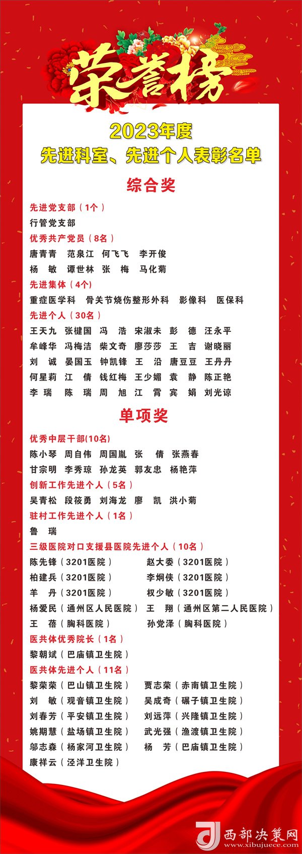 會議宣讀并表彰了2023年度醫(yī)院的先進(jìn)集體和先進(jìn)個(gè)人。